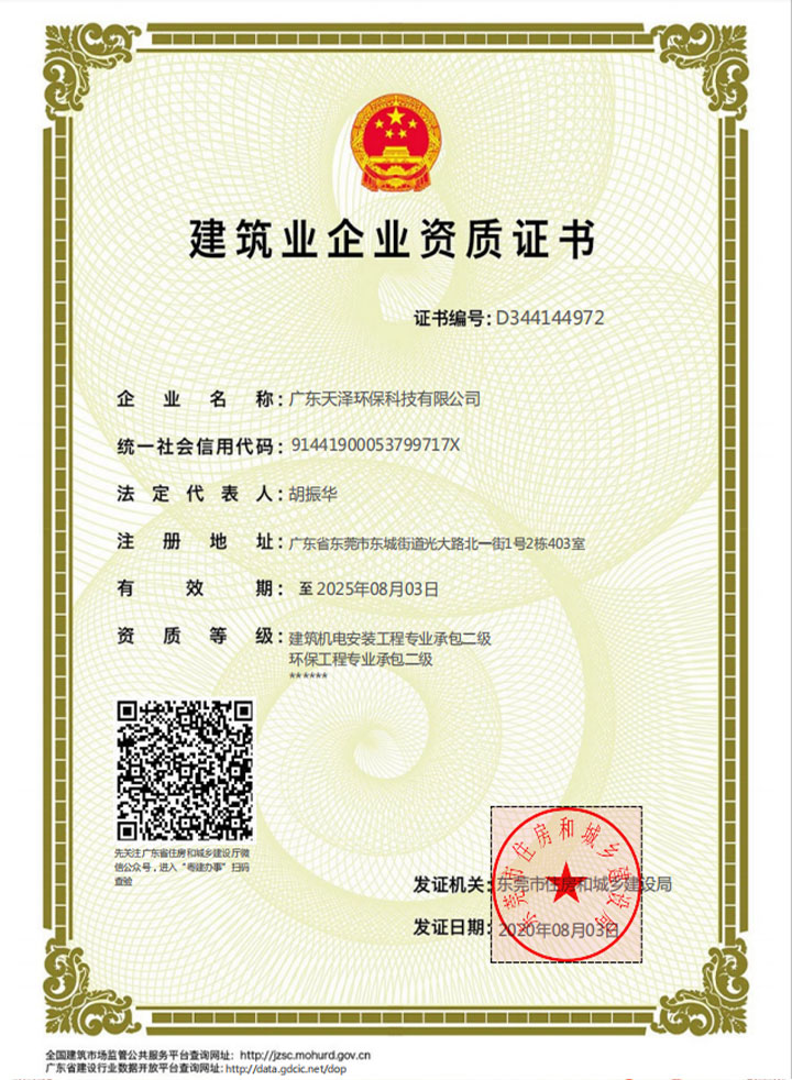 廣東天澤環保科技有限公司承接廢水處理工程、污水處理工程等各類廢水處理、工業污水處理!研發及銷售廢水、廢氣、噪音、純水、中水設備、機電設備、環保材料及藥劑;專業承包環保工程、市政公用工程、機電安裝工程、節能工程;專業服務環保設施運營、環境影響評價、環保項目投資及設計及咨詢等、噪音處理、中水回用等項目,在城市的廢水改造和養殖場污水處理這塊有豐富的經驗。公司主要業務范圍有:研發及銷售廢水、廢氣、噪音、純水、中水設備、機電設備、環保材料及藥劑;專業承包環保工程、市政公用工程、機電安裝工程、節能工程;專業服務環保設施運營、環境影響評價、環保項目投資及設計及咨詢等。公司自行生產的設備有:污水處理設備、廢水處理設備、養殖場污水處理設備和廢氣處理設備廣銷全國各地,同時天澤環保也為各大企業辦理排污許可證。公司成立于2012年,注冊資本1080萬元,是一家專業致力于環保設備、環保工程及技術服務的高新科技企業,公司專業致力于環保工程的設計、施工、安裝、調試和運營服務,同時從事相關環保設備制造和銷售,辦理相關環評等環保咨詢服務,是一家全方位的環境檢測公司。 公司以科技為先導,積極與各所知名高校的環境科學研究單位進行合作,力求把廢水處理工程和廢水處理工程項目做好做優,不斷的推動了環保技術向高深層次、多領域的方向發展。在環保工程界打造一流品牌